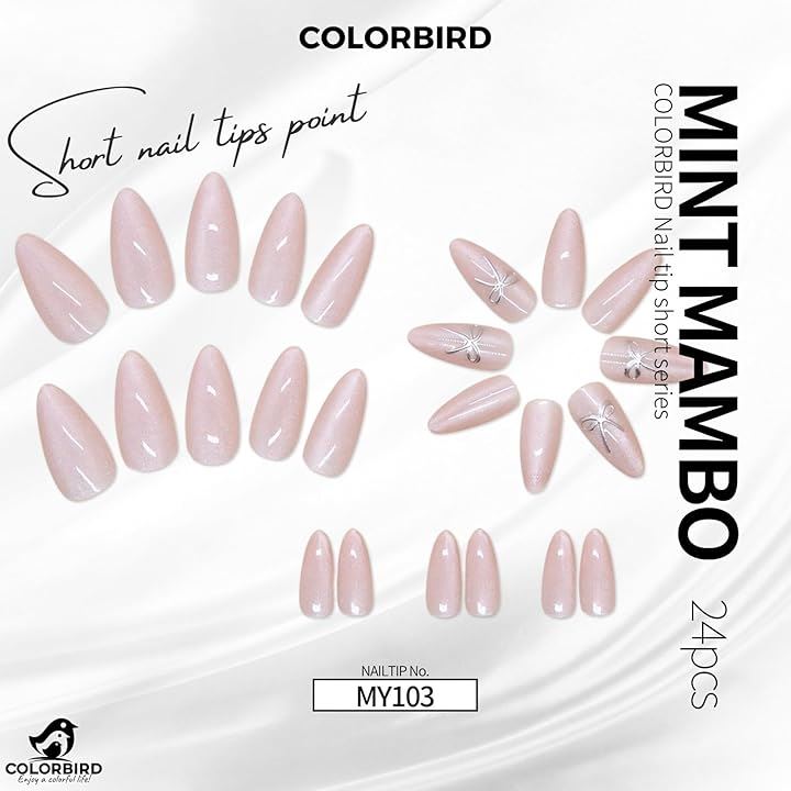 Nail tips, short, 24 pieces, magnetic nails, pink, fake nails, short, cute, point