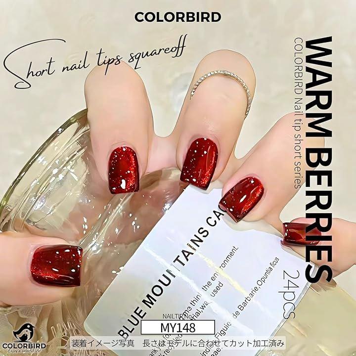 「エレガントなボルドーレッド」深みのあるボルドーレッドに、ガラスのような透明感をプラスした高級感あふれるネイルチップ。