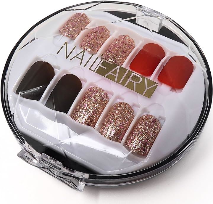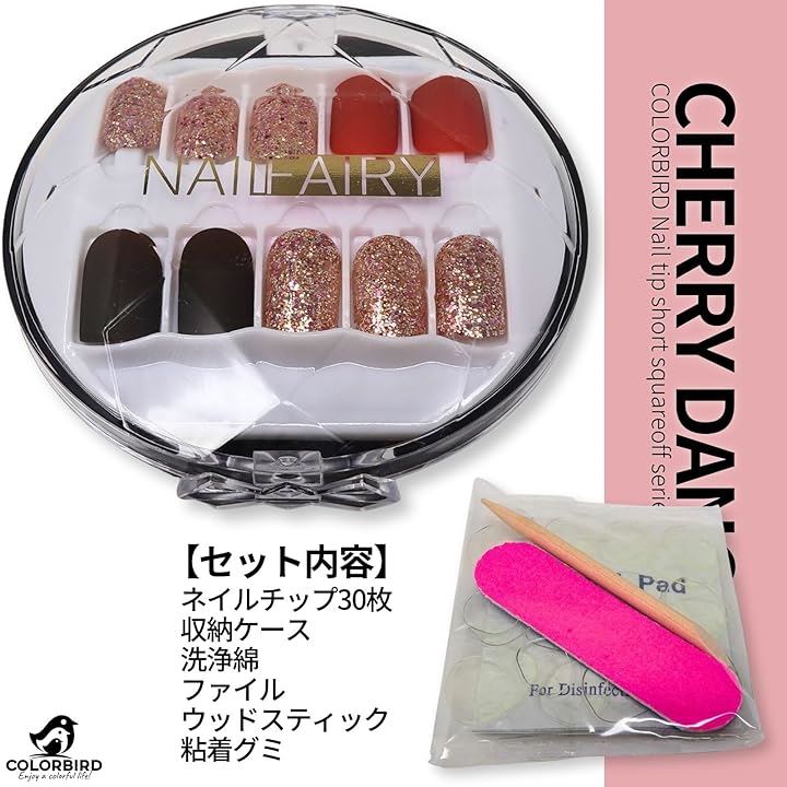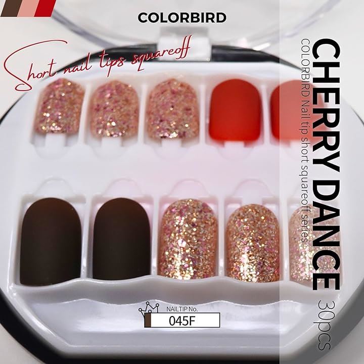 Nail tips short 30 pieces artificial nails short red brown cute NAILFAIRY