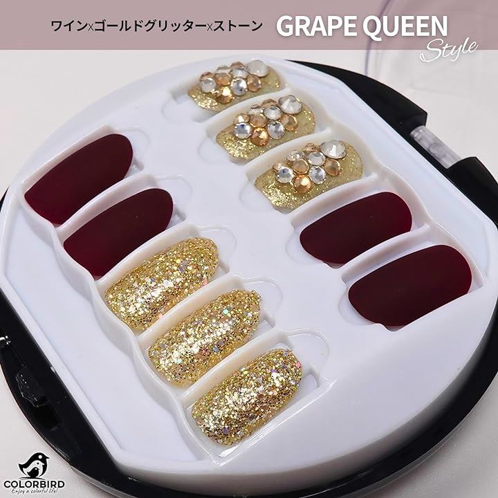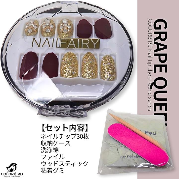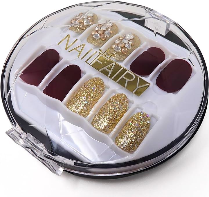 Nail tips short 30 pieces artificial nails short wine red gold cute NAILFAIRY