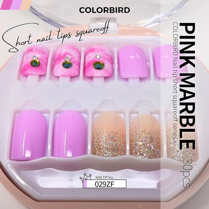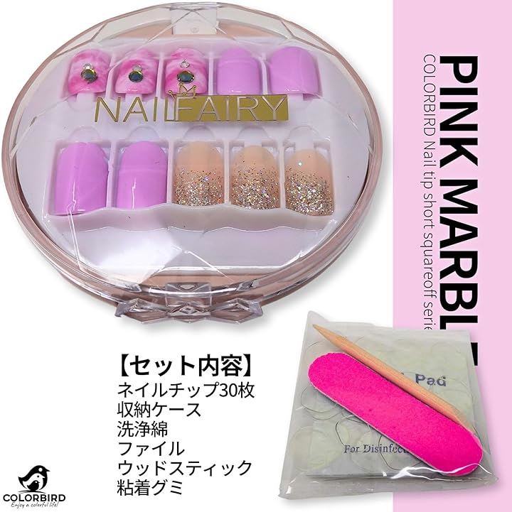 Nail tips short 30 pieces false nails short pink cute NAILFAIRY