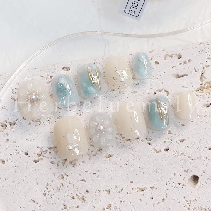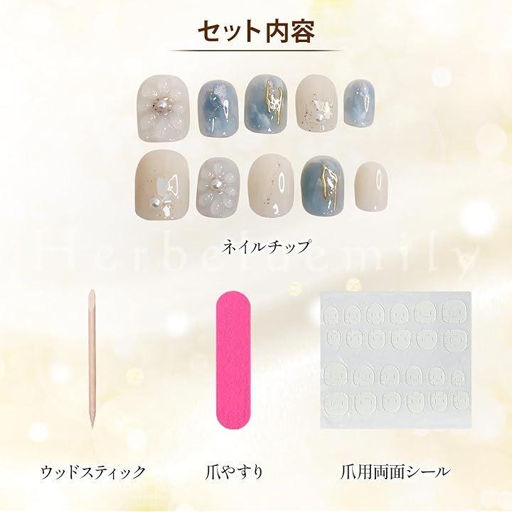 「ネイルサロンのようなおしゃれな指先に」手作り風のネイルチップは簡単につけ外しができるため、自宅で手軽に楽しめます。