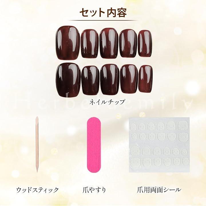 「商品仕様」専用クリアケース:7.5x7.5x1.6cm ネイルチップ10枚 付属品:両面シール、ウッドスティック、爪やすり *ネイルチップサイズの詳細は商品画像をご確認ください。