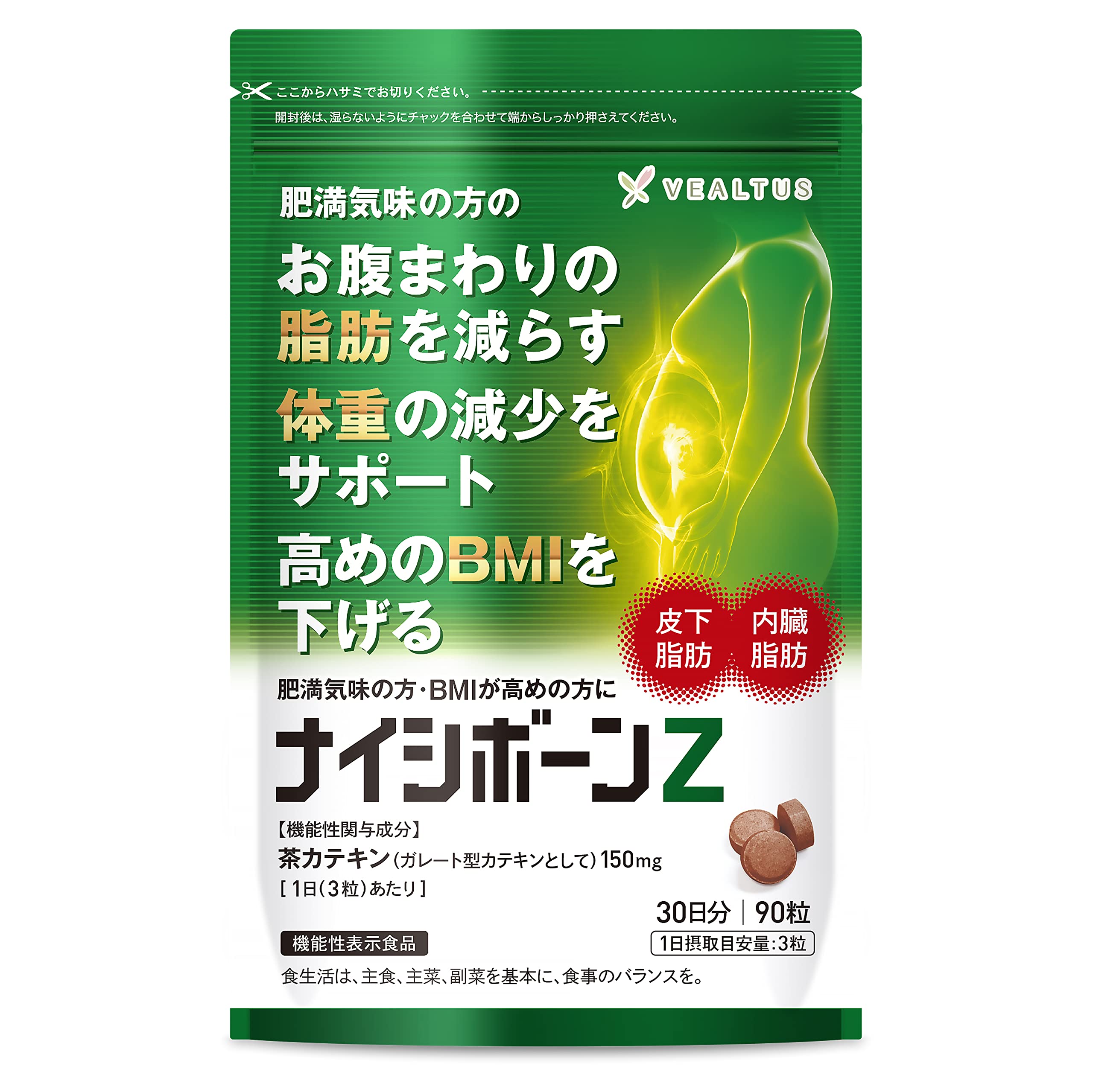 肥満気味の方のおなかまわりの脂肪(内臓脂肪、皮下脂肪)を減らし、体重の減少をサポートするし、高めのBMIを低下させる!! 【機能性表示食品】届出表示:本品には茶カテキン(ガレート型カテキンとして)が含まれます。茶カテキン(ガレート型カテキンとして)には、肥満気味の方のお腹まわりの脂肪(内臓脂肪、皮下脂肪)を低下させ、体重の減少をサポートし、高めのBMIを低下させる機能があることが報告されています。【届出番号】G1053 【10種のサポート成分を厳選配合】「サラシア」「酵母ペプチド」「有機アガベイヌリン」「ジンジャー」「リコライス」「シナモン」「フェンネル」「金時生姜」「クローブ」「アカメガシワ」 【こだわりの無添加】香料、保存料、着色料、光沢剤は一切使用していません。【製造のこだわり】徹底的に管理された日本国内の健食GMP認定工場で製造しています。品質試験に合格した商品のみ皆様にお届けしております。 【お召し上がり方】1日3粒を目安に、水又は白湯と一緒に噛まずにお召し上がりください。(1袋90粒入り 30日分) 【ご注意】疾病に罹患してる場合は医師に、医薬品を服用している場合は医師、薬剤師に相談してください。