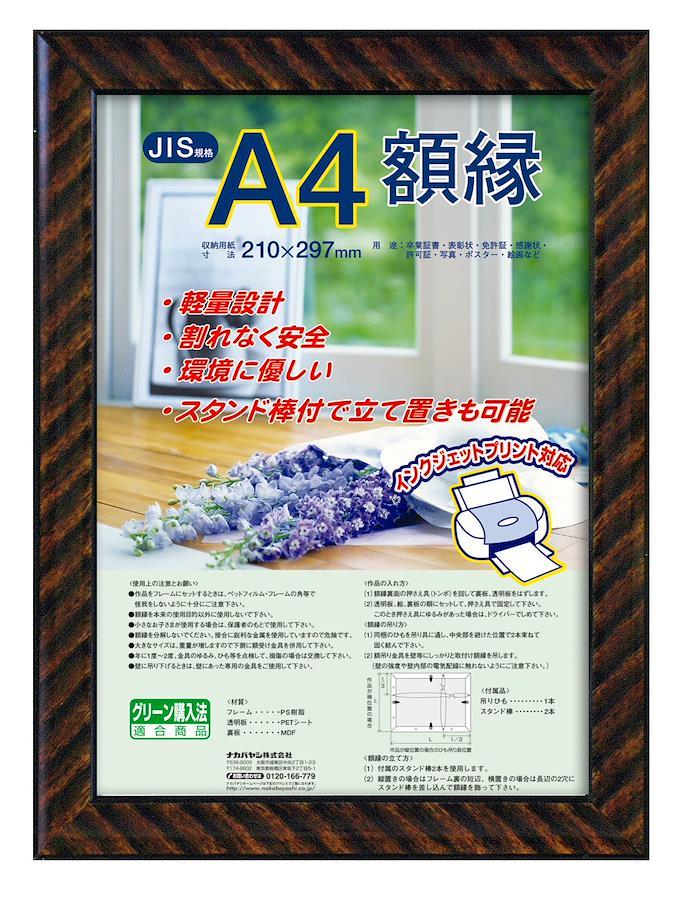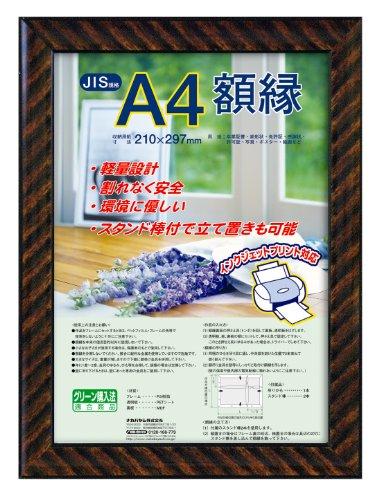 ●軽量設計!●割れなく安全!●環境に優しい素材を使用!●スタンド棒付で立て置きも可能!●樹脂製(再生PS)フレーム 27mm幅・12mm厚●透明板PETシート●裏板MDF●吊り紐付き スタンド棒2本付き●シュリンクパック包装 重量 : 350g 外径サイズ : 253×340×14mm 収納サイズ : 210×297mm 形: 長方形 木目調のシマ模様が美しい額縁です。 フレームに再生樹脂を使用した環境にやさしい額縁です。