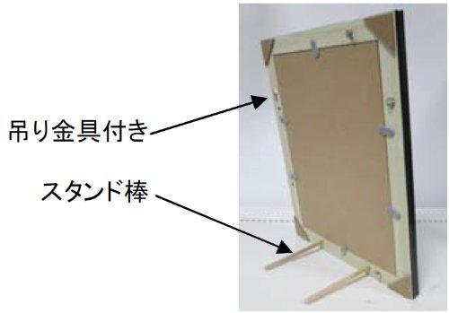 ●軽量設計!●割れなく安全!●環境に優しい素材を使用!●スタンド棒付で立て置きも可能!●樹脂製(再生PS)フレーム 27mm幅・12mm厚●透明板PETシート●裏板MDF●吊り紐付き スタンド棒2本付き●シュリンクパック包装 収納用紙サイズ:420x297mm つや消し金の装飾が高級感を高めます。 吊りヒモ付 フレーム外形寸法:タテ463xヨコ340x厚み14mm 材質:フレーム/樹脂製(再生PS)27mm幅ウレタン塗装、透明板/PET(0.4mm厚)、裏板/MDF 本体重量:600g スタンド棒付で縦置きも可能 賞状のサイズは多種多様のため要注意