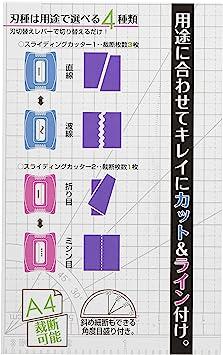 用途に合わせてキレイにカット&ライン付け。チケットやスクラップブッキングの作成にとても便利。回転刃タイプだから紙がズレにくい。刃種は用途で選べる4種類!