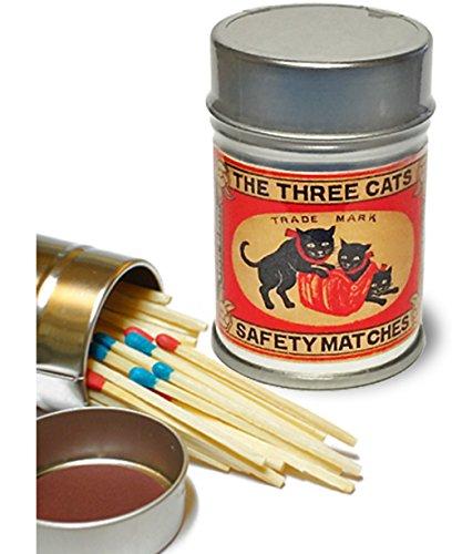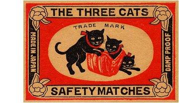 ナカムラマッチが古燐票(明治・大正の頃のマッチラベル)を缶マッチラベルで再現!今回のレトロラベルは、猫シリーズ-3種類をご用意いたしました。「スチール缶マッチ」は、防湿効果を保持できるよう缶ふたの内側に マッチを擦って火をつける側薬を張り、マッチの軸向きは火のつく頭が下になります。