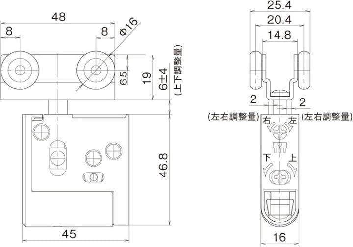 ドライバー1本で上下(±4mm)左右(±2mm)調整可能