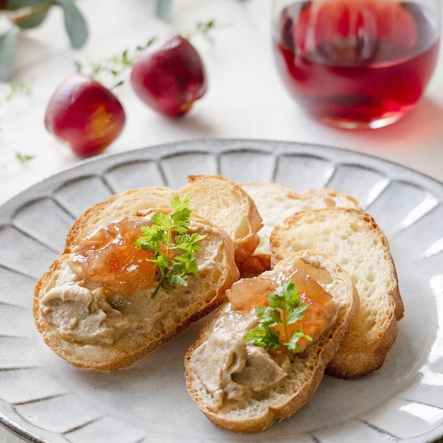 パンと楽しむスプレッド。国産鶏のレバーペーストに鶏もも肉を加え、瀬戸内産の夏みかんでさわやかに仕上げました。