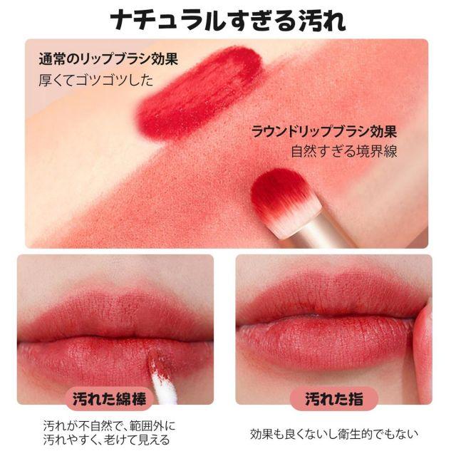 【使いやすい】ラウンドヘッドのデザインは、アイシャドウ、口紅、コンシーラーの境界を正確にぼかすことができ、まず唇を保湿してプライマーを塗って、それから唇の内側に口紅を塗って、唇ブラシで内側から外側に塗って、自然なマットリップの完成です。初心者やプロのメークアップの使用に適しています。