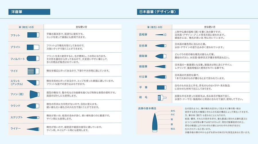 上質な羊毛材、芯にはイタチ毛を使用して、穂先の良く効く線描筆に仕立てられています。本来は日本画用ですが、デザイン分野でも多用されています。
