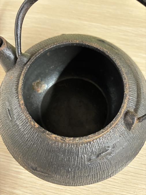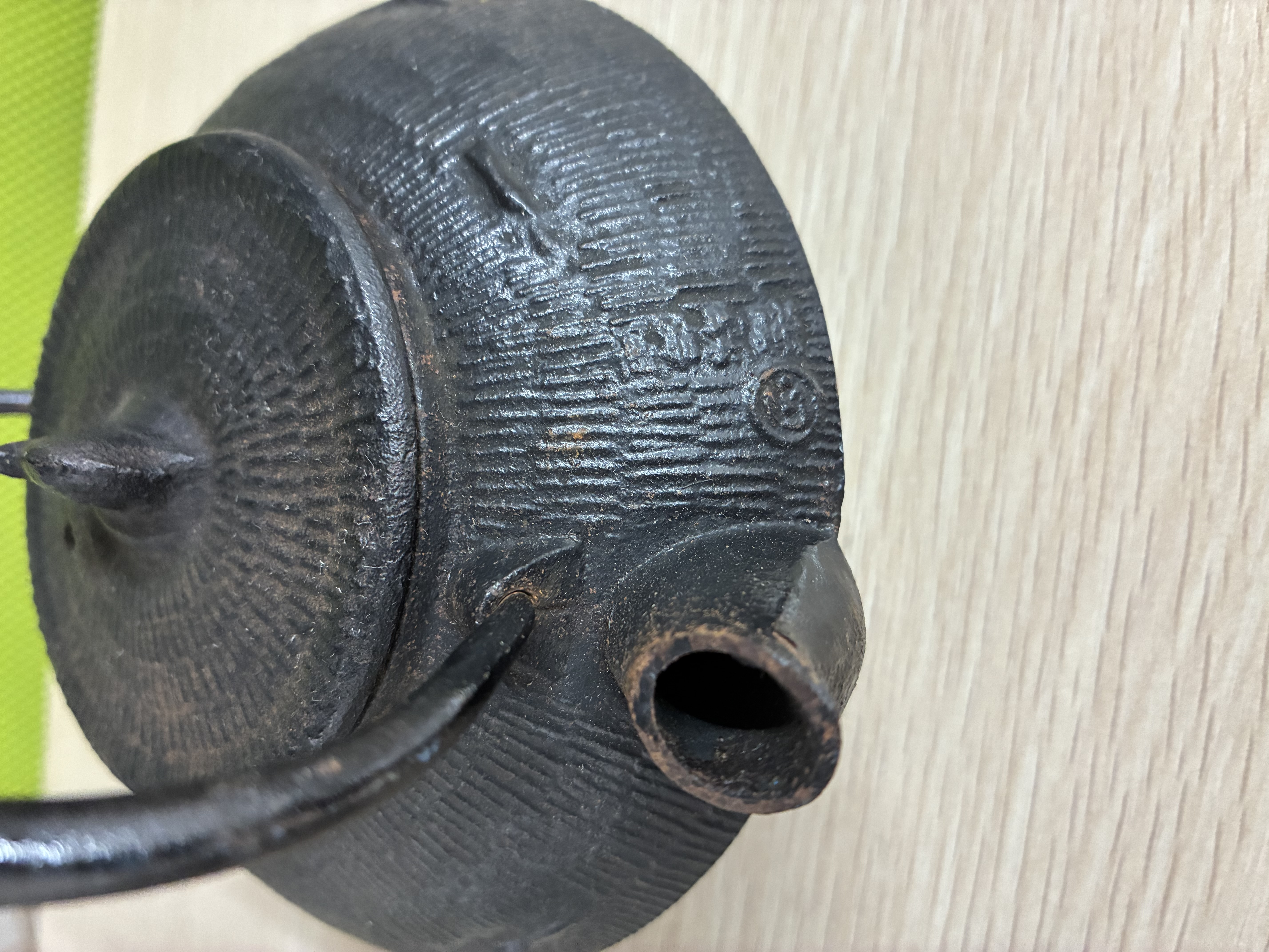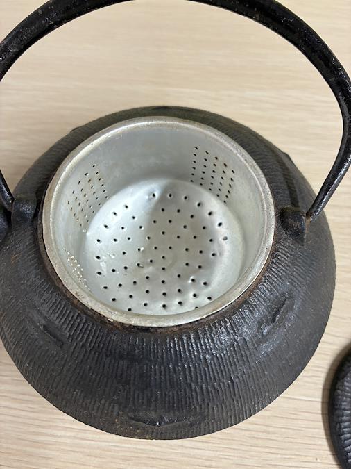 南部鉄器の鉄瓶です。茶こし付きです。大きさは横12㎝高さ6㎝蓋7.5㎝比較的保存状態は良いと思います。