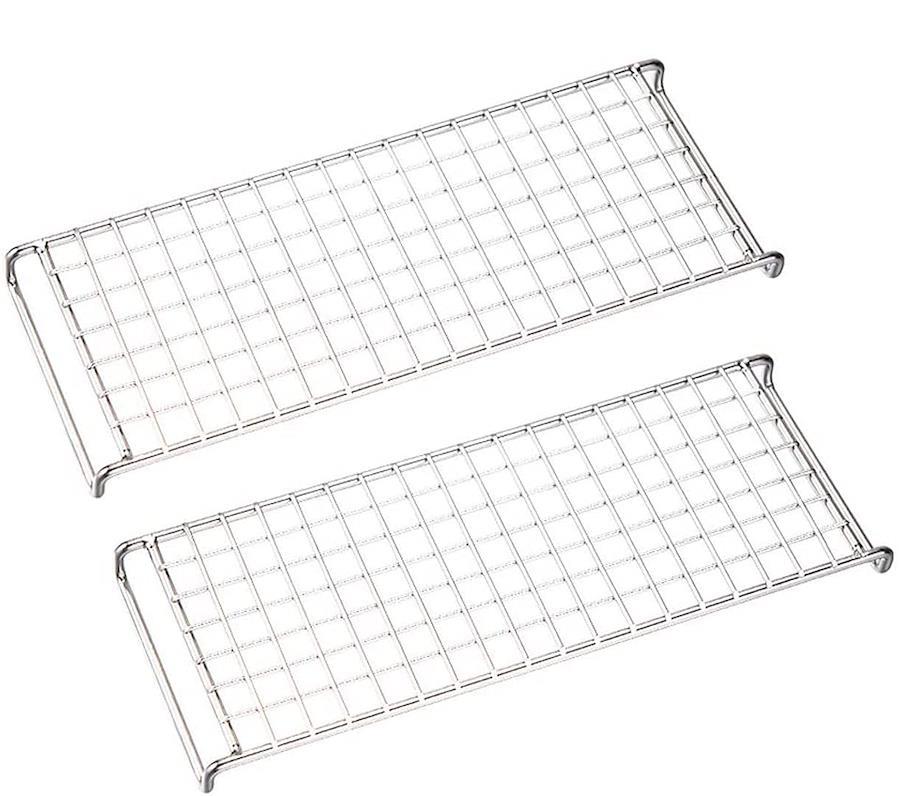 軽量焚き火台用ゴトク 2枚セット クリップ金網型 軽量焚き火台用ゴトクになります。目が細かく、焼き物などの焼き物に向いています。両サイドが曲げ加工されている為、グリルブリッジにフィットし、ずれを防止してくれます。