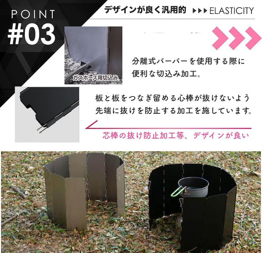 総重量:(約)185gサイズ:(約)幅680×高さ140mm、 収納サイズ:(約)幅7.5×奥行14.8×高さ2.0cm、※商品の特性により、製造過程による傷、汚れ等がある場合がございます。また、4本ペグタイプのため収納ケースの出し入れ時に引っ掛かる場合がございます。仕様によるものですので、あらかじめご了承ください。素材:本体/アルミニウム合金、ケース/プラスチック10枚連結のワイド風防。シングルバーナーを意識したサイズ。風除け(かぜよけ)だけでなく、火力の周りを囲むことによる燃焼効率が向上するため、燃料の節約にもなります。アウトドアシーンでは、これまで以上に必要な必須アイテムとしてご愛用いただければと思います。 ストーブやバーナーの熱を反射し、熱効率を格段に向上させ、料理、お湯を沸かしたりする時間を短縮し、寒い時期に暖を取るにも大変役に立ちます。※一体型シングルバーナーでのご使用は、バーナー全体を囲んで使用しないでください。輻射熱によりボンベ等が高熱になりやすいです。特徴:アルミ製特有の軽量、折りたたみ収納ができるコンパクトタイプ、そしてプラスティック製のハードケースは壊れにくく、他のアイテムと干渉しません。
