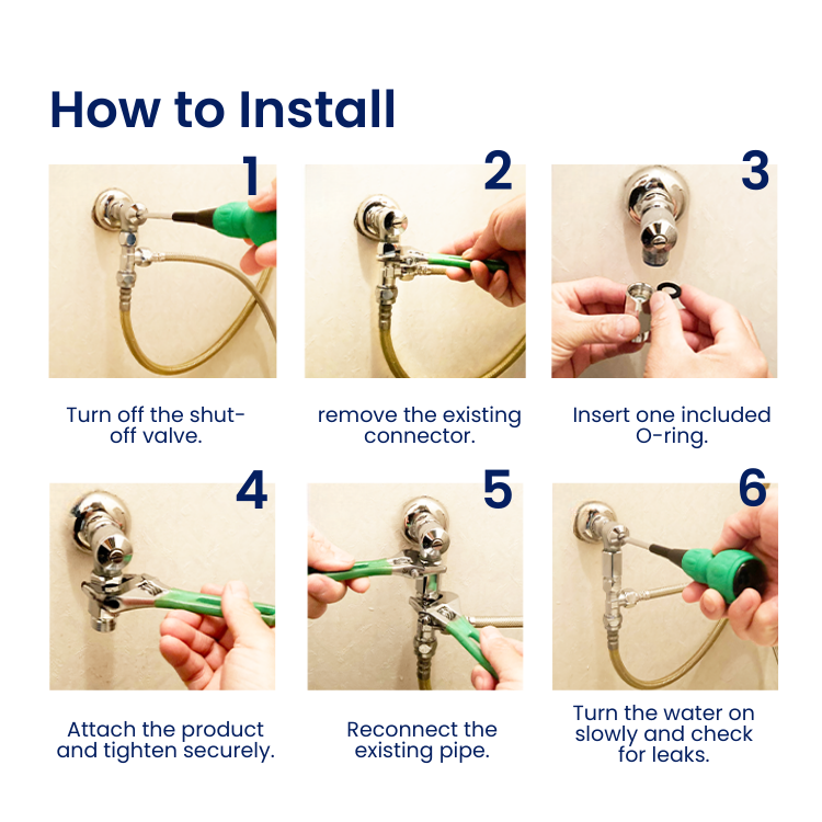 【Installation Guide】Compatible with G1/2 thread connections. Ideal for:•Bathroom: At the base of the shower hose.•Kitchen: Under the sink or at the faucet.•Toilet: At the water shut-off valve.•Outdoor: At the base of garden hoses or sprayers.________________________________________