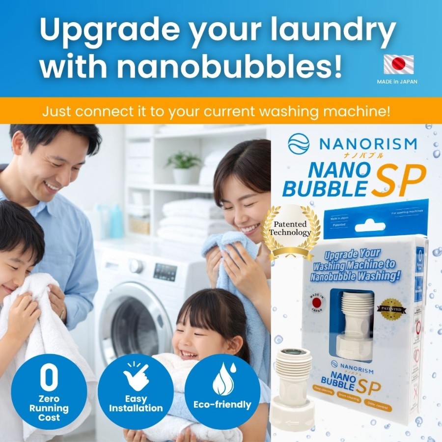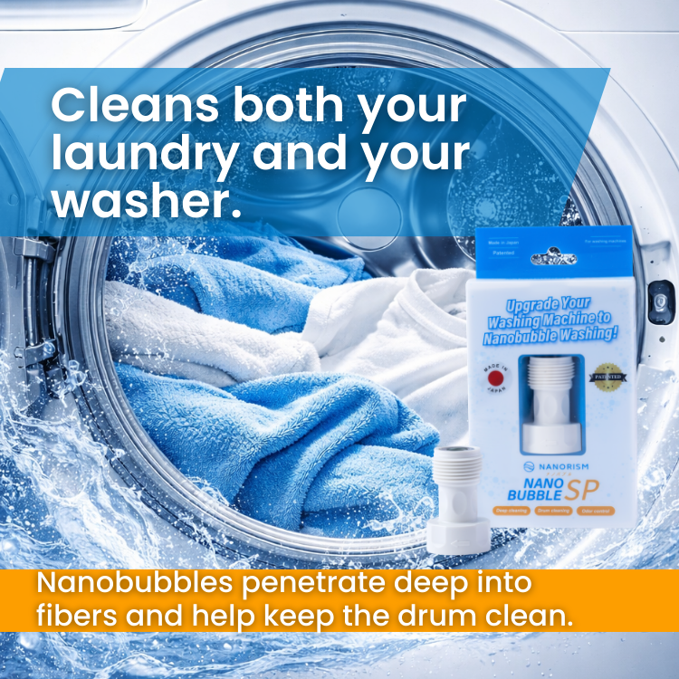 Nano Bubble SP | NANORISM®Experience the Next Generation of Water Technology. The Nano Bubble SP is a high-performance laundry adapter featuring patented core technology. It generates 100 million nano-sized bubbles (approx. 100nm) per ml, transforming your existing washing machine into a powerful cleaning and sanitizing tool.