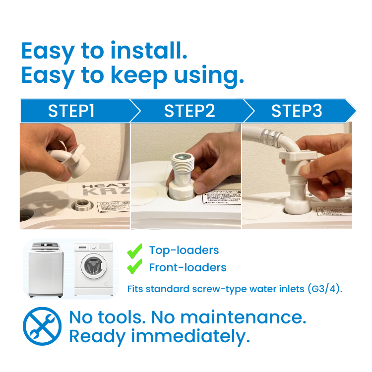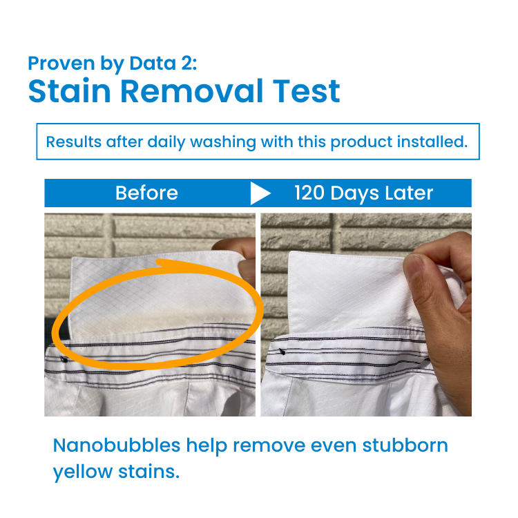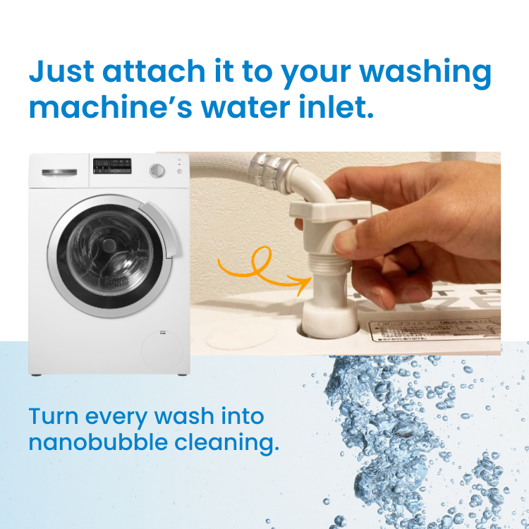 【Key Benefits】•Deep Fabric Cleaning: 100 million micro-bubbles per ml maximize detergent efficiency, penetrating deep into fibers to lift stubborn stains.•Odor Elimination: Reaches the heart of fabric fibers to wash away bacteria and grime, effectively preventing damp, musty "half-dry" smells.•Drum Hygiene: Daily use inhibits the buildup of mold and biofilm (slime) on the outer surface of the washing machine tub, keeping it clean and sanitary.•Verified Performance: Backed by experimental data, ensuring superior washing results and enhanced hygiene for your entire laundry load.•Easy Setup & Zero Maintenance: Tool-free installation with no replacement filters required—enabling semi-permanent use just by attaching it to the water inlet.