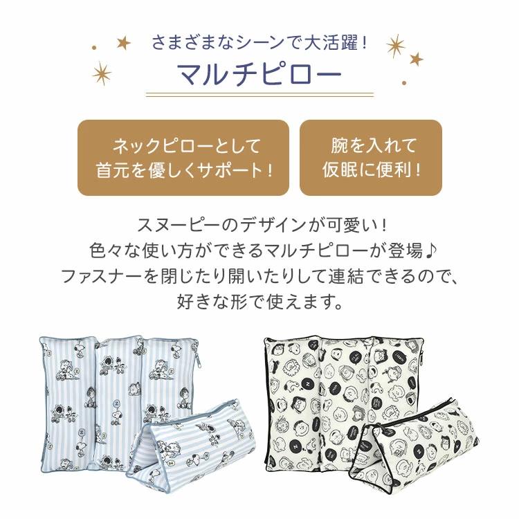 【マルチピロー】スヌーピーのデザインが可愛い!仮眠枕としてはもちろん、腰当てや足枕・小枕・チェアパッド・シートクッションなど、色々な使い方ができるマルチピローです。ファスナーを閉じたり開いたりして連結できるので、背当てやロール枕、ベンチシートなど使い方のバリエーションが増えます。お家や仕事、旅行にもオススメです♪