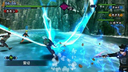 人気アニメ『NARUTO-ナルト- 疾風伝』を題材にしたACT。本作は1人でも4人でも遊べる"フォーマンセルアクション"を基本としており、多彩なフリーミッションを自分だけの小隊を組んで挑戦できる。フリーミッションは防衛ラインを死守する任務や盗賊の探索などバラエティ豊かなミッションを60以上も用意。1人用のストーリーミッションについては、ゲーム用に書き下ろされたオリジナルシナリオが展開する全17ミッションが用意されている。バトルシステムには、連撃だけでなく4人の仲間が息を合わせて敵を倒す"キズナ連係"を採用。連係がスタートしたあとは、3人の仲間と協力しながら、吹き飛ばされた敵にタイミングよくボタンを押すことで連係を継続したり、フィニッシュ攻撃を決めたりできる。