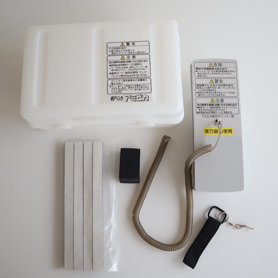 National(ナショナル)の 網戸ふき アミピカ EH481 です。強力磁石で網戸を挟み、両面を同時にお掃除できる便利グッズ。収納ケース付きで保管もしやすいです。