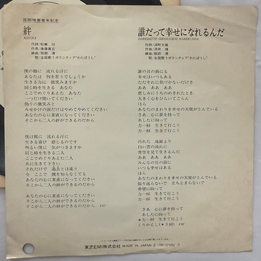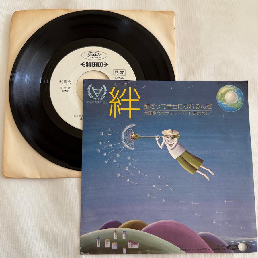 National Singing Volunteer "Wataboushi" Showa Era Vintage EP Record "Kizuna" "Dareda Shiawase ni Narunanda" 7-inch Extended Play
