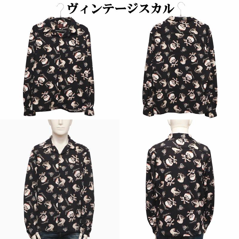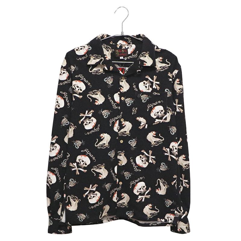 ヴィンテージスカル ストレッチ縮緬風 総柄 長袖 シャツ