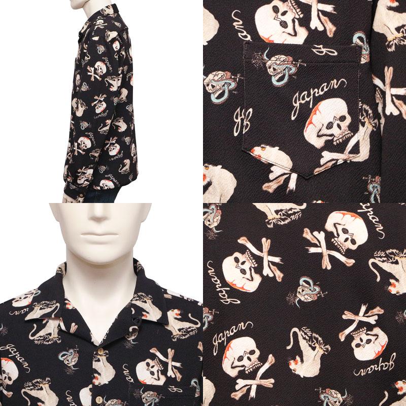 ストレッチ素材生地を使用した総柄 ヴィンテージスカルの長袖シャツ