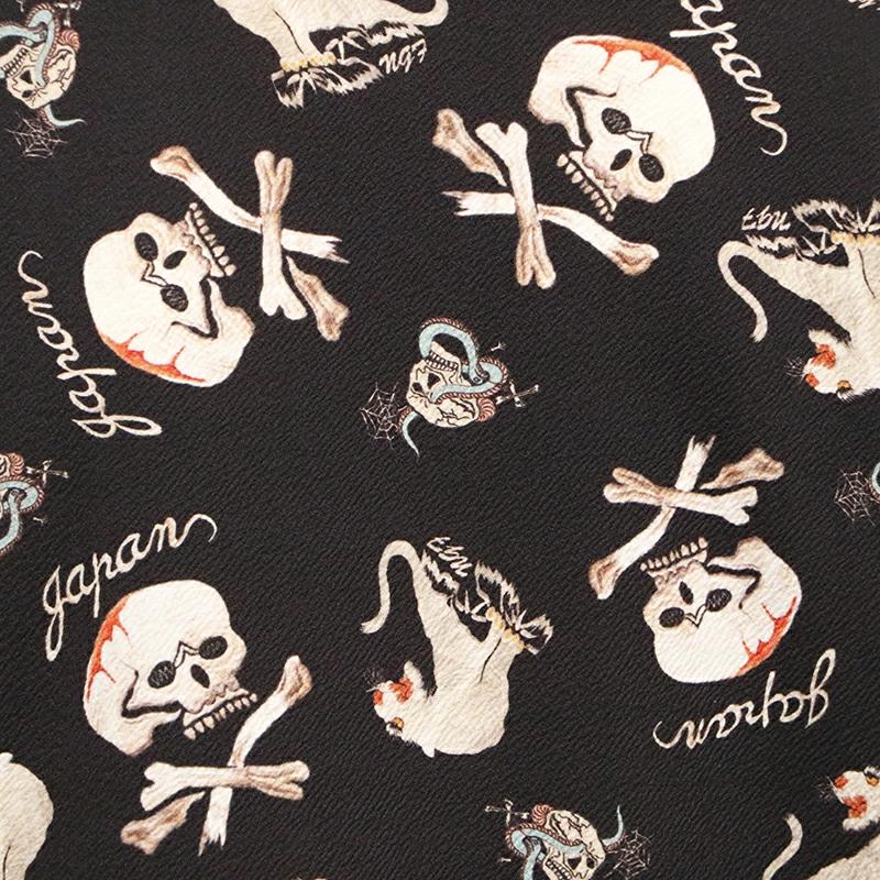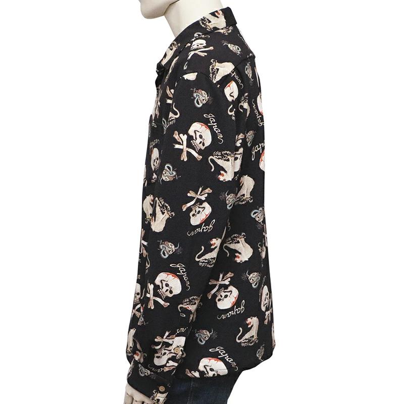 ヴィンテージスカル ストレッチ縮緬風 総柄 長袖 シャツ