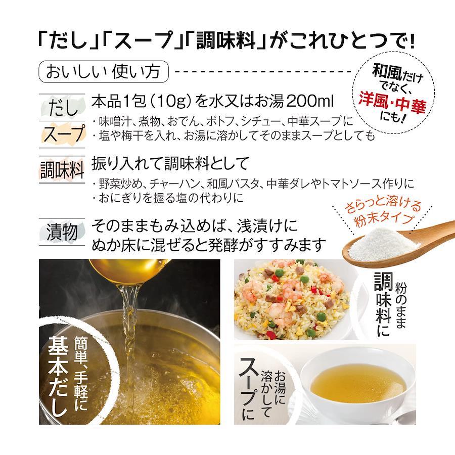 【洋風・中華にも】“和風だし”としてだけでなく“洋風”にも“中華”にもお使い頂けます。味噌汁やうどん、煮物、ポトフ、中華スープ、炊き込みご飯、野菜炒め、チャーハン、焼きそば、パスタ、おにぎり等、幅広い料理でお楽しみください。お湯を注ぎ、梅干しや塩をほんのひとつまみで“おいしいスープ”としてもおすすめです!