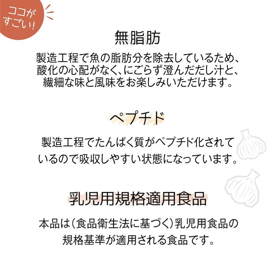 【だから、おいしい】原材料は国産のイワシ・カツオ・無臭にんにく・昆布。魚は頭から尻尾、無臭にんにくは皮まで、素材をまるごと使用しています。化学処理は一切せず、じっくり煮込んでエキスを抽出し、粉末に仕上げました。《産地:カツオ:鹿児島・高知、イワシ:山口・九州、無臭にんにく:山口、昆布:利尻・羅臼・日高》素材本来ののうまみとコクが詰まった「京都の料亭」監修の味です。