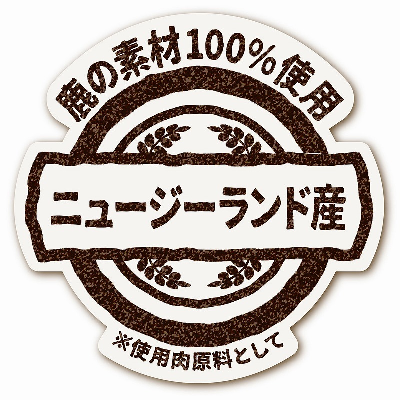 【原材料】肉類(鹿・鹿レバー)、加工でんぷん、グリセリン、ソルビトール【保証成分】たん白質21.5%以上、脂質2.0%以上、粗繊維1.0%以下、灰分4.0%以下、水分20.0%以下【エネルギー】336kcal/100g