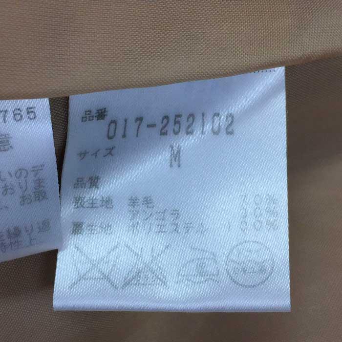 | 商品説明 | 【管理番号】 011002 【ブランド名】 NATURAL BEAUTY BASICナチュラルビューティーベーシック 【商品名】 【アイテム】 ノーカラー アンゴラ混 ウールコート M 【型番】 【サイズ】 M 平置採寸(肩幅:約39cm・身幅:約47cm・袖丈:約59.5cm・着丈:約81.5cm) 【色・柄】 ベージュ 【素材】 表地:羊毛70%アンゴラ30% 裏地;ポリエステル100% 【付属品】 【外観ランク】ABランク【内観ランク】 【商品補足説明】 右袖付け根辺りに0.2cm程、生地が薄くなっている箇所があります。 |