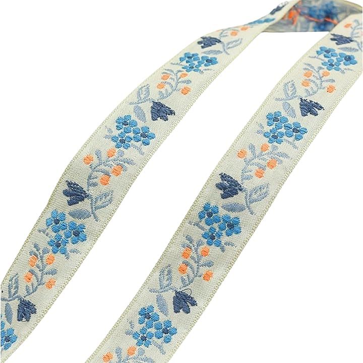 この幅2cmのチロリアンテープは、美しいボタニカル刺繍が施されたリボンで、手作りの作品に格別の彩りを加えます。