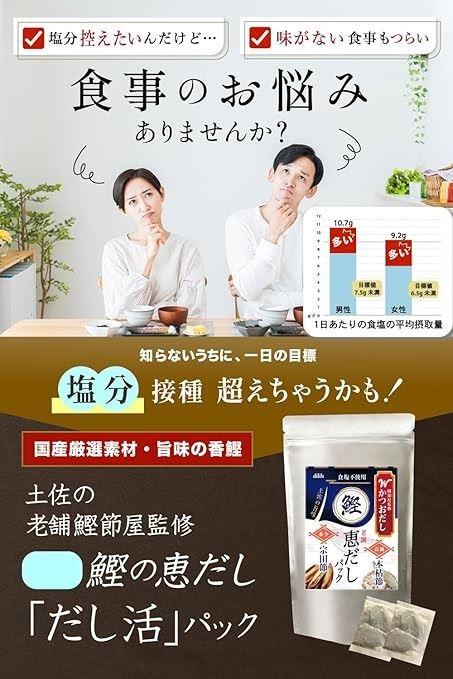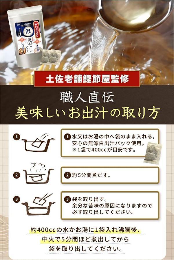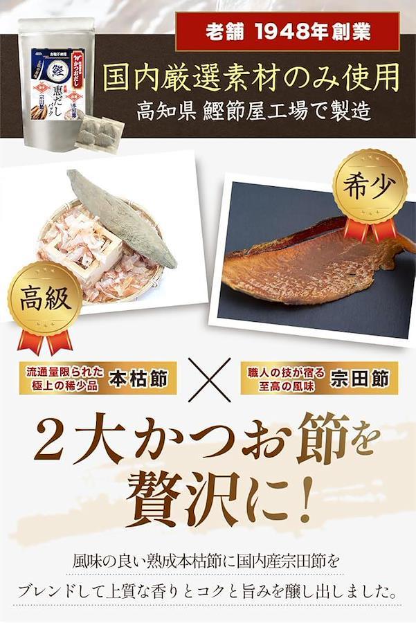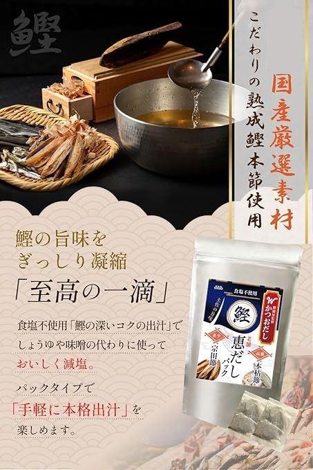 「本格的な出汁を手軽に」 高級素材を厳選した「かつお恵みだし」は、家庭で料亭の味を楽しむことができる出汁パックです。