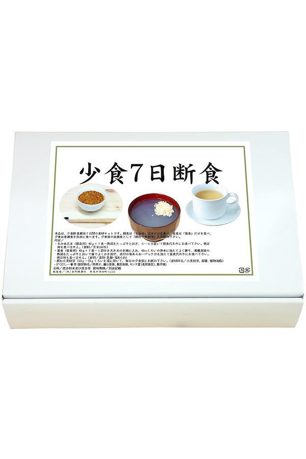 使用方法/≪朝食≫「おかゆ」玄米だけを食べます。熱湯をたっぷりと注ぎ、5~6分置いて、朝食代わりにお食べ下さい。他には何も食べません。 使用方法/≪昼食≫「葛食」だけを食べます。一袋分を大きめのお椀(みそ汁用の大きめの椀)に入れ、40ccくらいの水を加えてよく練り、沸騰直後の熱湯をたっぷりと注いで、箸でよくかき混ぜ、添付の塩あられ1パック分を加えて、昼食代わりにお食べ下さい。他には何も食べません。 使用方法/≪夕食後≫小麦胚芽20gくらいを、湯に溶いて飲みます。亜鉛ミネラルとビタミンが豊富です。 内容/おかゆ玄米(朝食用)…40g×7食・葛食(昼食用)…40g×7食・飲む小麦胚芽(夕食後)…150g×1袋 アルミ袋・密封袋入り1パック毎の小分け包装