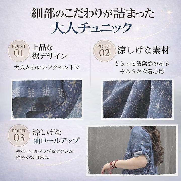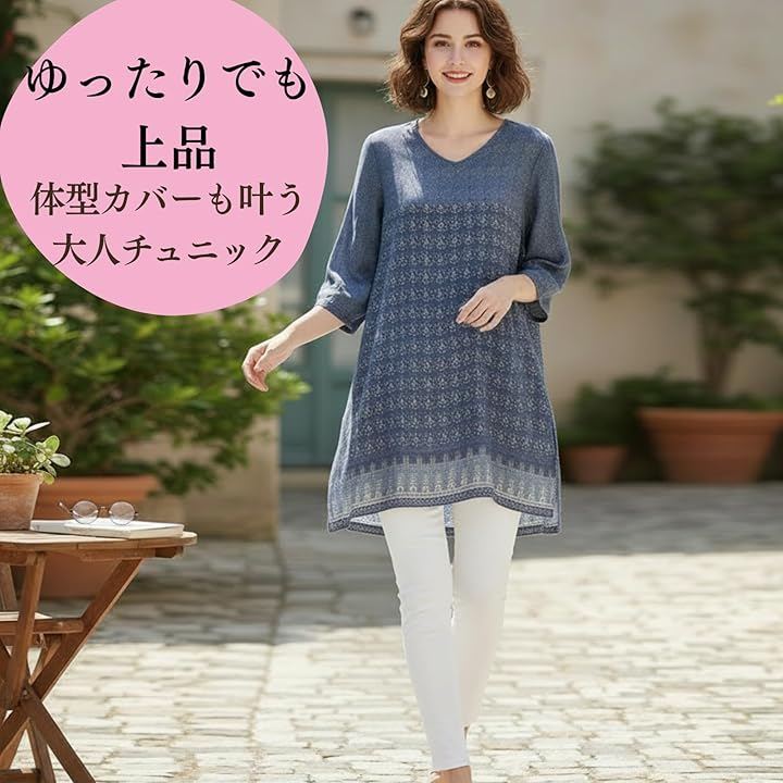 リラックス感のある着こなしが楽しめる、大人ナチュラルなチュニック。