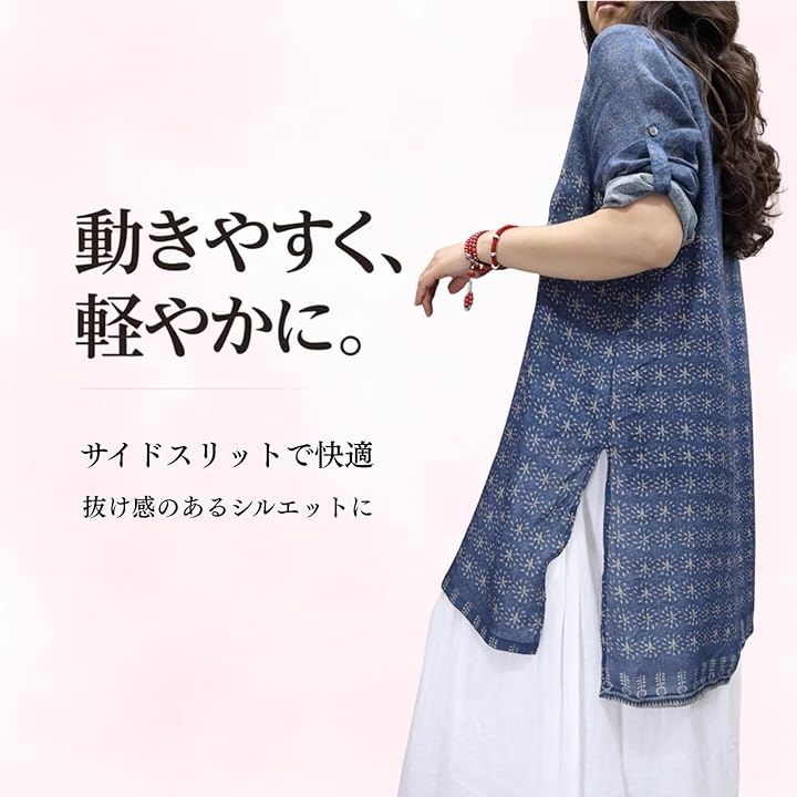 薄手で風通しがよく、涼しく着られる軽やか素材を使用。