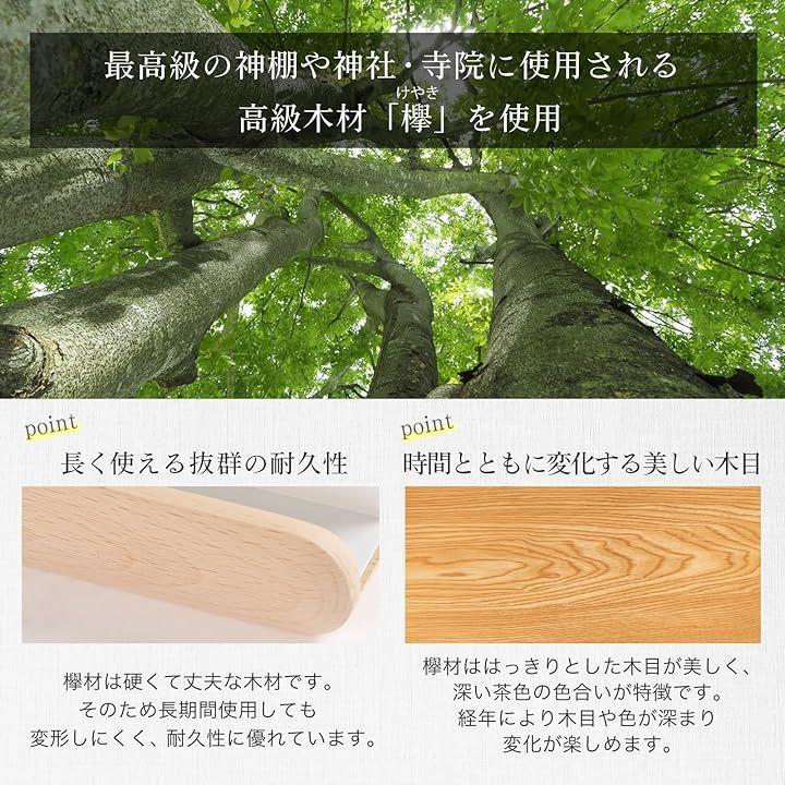 職人が丁寧に仕上げた木製の風合いが、神聖なお札を引き立て、和室はもちろん、洋室や玄関など様々な空間に自然に溶け込みます。