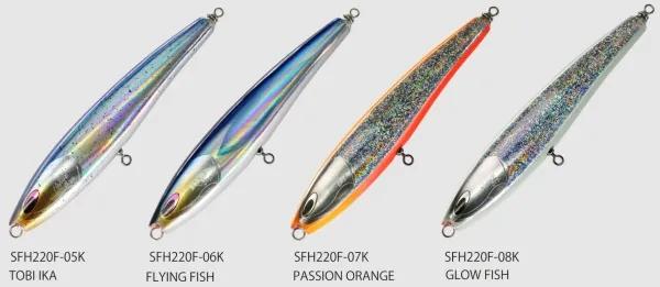 全長:220mm重量:105g(天然素材の為、重量に誤差が生じます)推奨フック: BKK 4/0,SPXH 5/0(シングルでは、Diablo11/0.管ムロ35号など9g~11g)対象魚: ヒラマサ、クロマグロ、GT