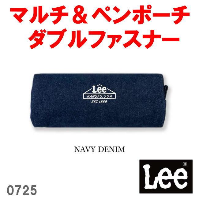 Navy denim Lee 0725 printed denim double zipper multi-pouch pen pouch
