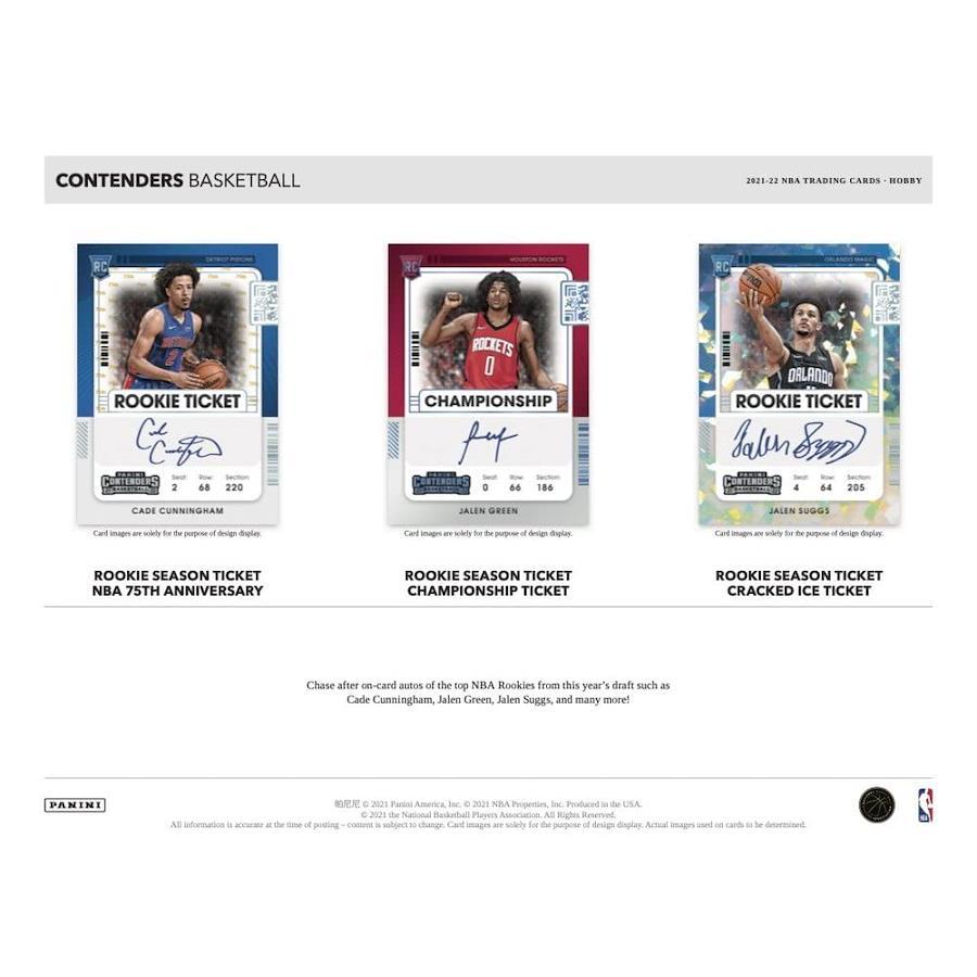 2021/22コンテンダーズは、NBAの75周年を祝います! 待望のルーキーチケットサインで今年のトップルーキーのオンカードサインを追いかけましょう! 小売店限定のルーキーシーズンチケットステッカーと、超レアなルーキーシーズンチケットスタブステッカーを探してください! ケイド・カニングハム、ジェイレン・グリーン、エヴァン・モーブリー、スコッティ・バーンズ、ジェイレン・サッグス、ジョシュ・ギディー、フランツ・バグナーのルーキーカードをフィーチャーしています!