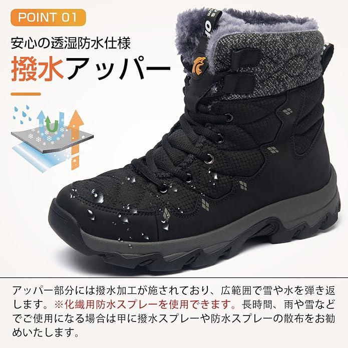 2.防水機能があると安心! アッパーに撥水加工が施されており、雨や雪が染み込みにくく、手入れも簡単。★完全防水ではありませんが、耐水圧のアッパー素材なので、水の染み込むことをガッチリ防ぐことができ、水分の多い雪にも強く、積雪や降雪時靴内の爽やかを保ちでき、湿気から逃れ、日常のお出かけや通学や普段履きにはもちろん、雪国への旅行などにも気楽で遊んで行けます。?レースアップタイプで好みに応じてフィット感を調節できるのもポイントです。