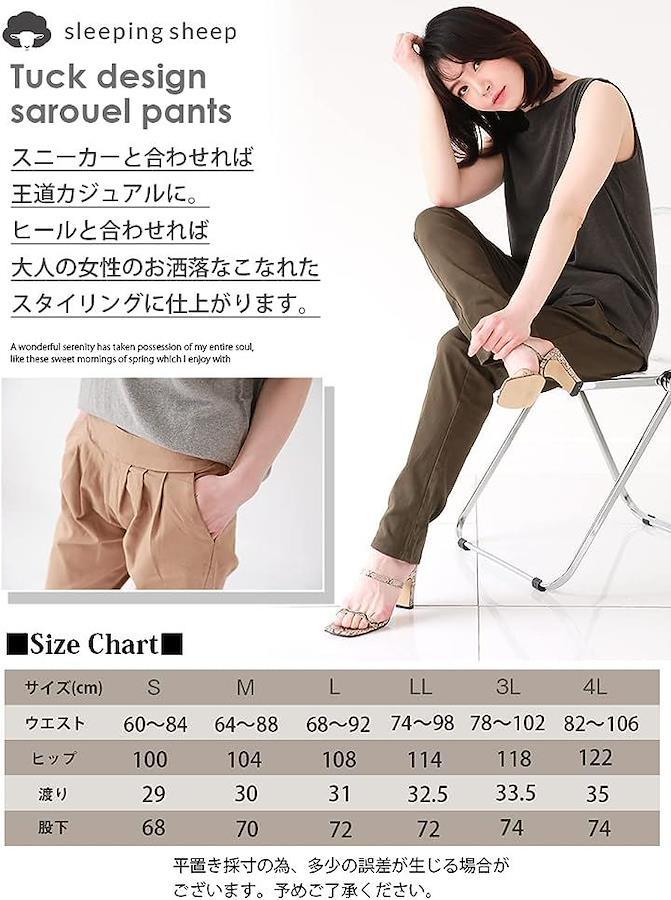 4L:ウエスト(82-106cm)、ヒップ122cm、渡り35cm、また下74cm