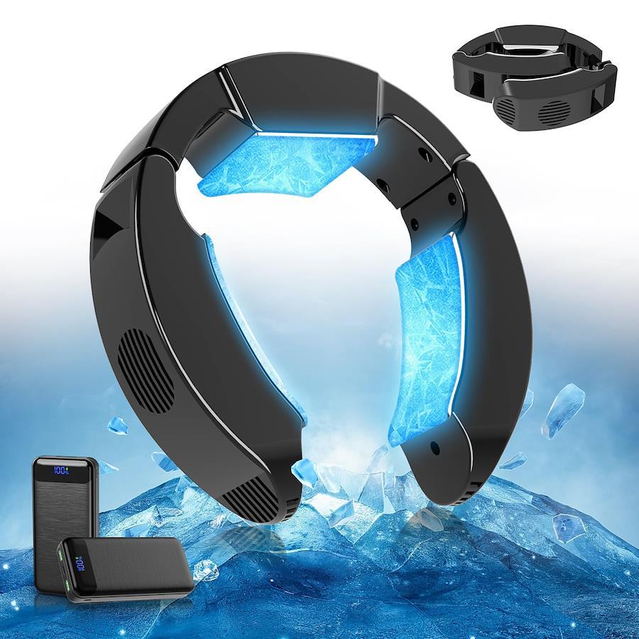 ネッククーラー 冷却プレート 【2025新登場&-17℃瞬間冷却&30000mAh モバイルバッテリー付き】 ペルチェ素子 首掛けクーラー 首掛け扇風機 強・弱2つモード 最大-17℃冷やす 折り畳み Type-c給電 ネックファン 持ち運びやすい PSE認証済み 熱中症対策 熱中症対策などに最適 携帯 エアコン くびかけ扇風機 ねっくくーらー (ブラック)