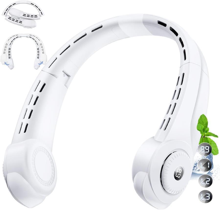 ネッククーラー『2025年夏革新型』Oldstar ネックファン 5000mAh 首掛け扇風機 LEDディスプレイ表示 携帯扇風機 瞬時冷却&熱中症対策 3段階風量調整 静音設計 超長時間連続稼働 折りたたみ式 羽なし自由角度調整可 Type -C充電式 遠足/自宅/家事などに最適 日本語取扱説明書付き(ホワイト)