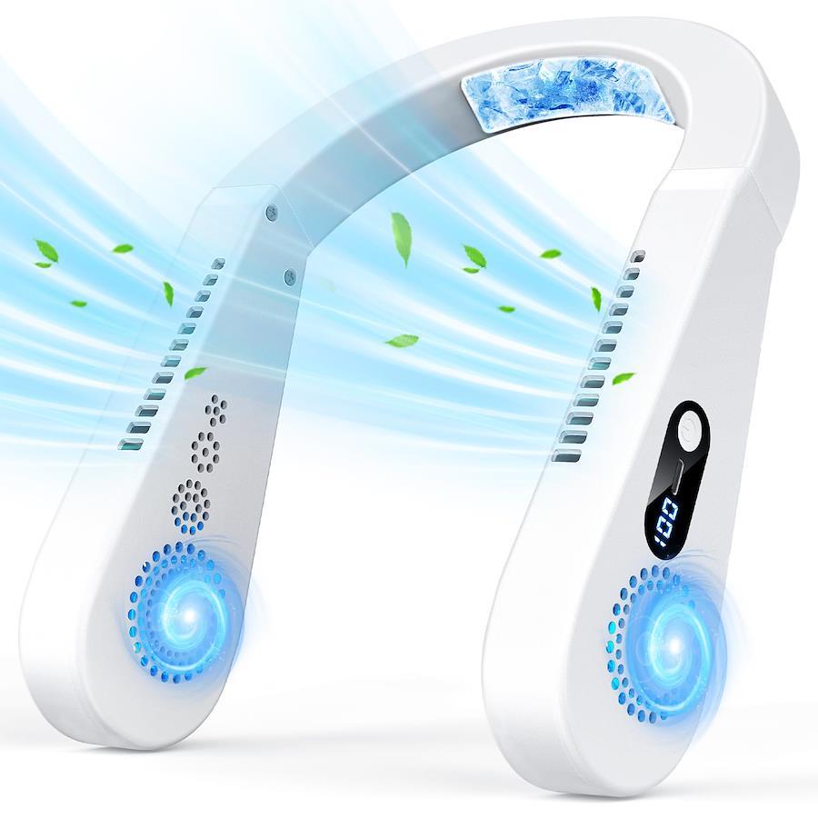 ネッククーラー 首掛け扇風機 ネックファン 【2025冷却革命・快適性MAX】超 軽量 携帯扇風機 首掛け 扇風機 強力 大風量 7000mAh大容量 3段階風力調節 羽根なし 静音 ペルチェ冷却プレート LEDディスプレイ表示 長時間稼働 Type-C充電式 熱中症対策 花火大会/通勤通学/アウトドア/夏キャンプ プレゼント