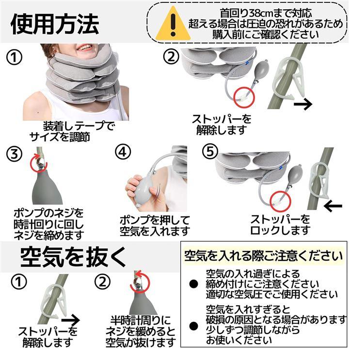 「自分好みにフィット調整」 ポンプで空気の量を自由に調整でき、面ファスナーで首回りのサイズもカスタマイズ可能。