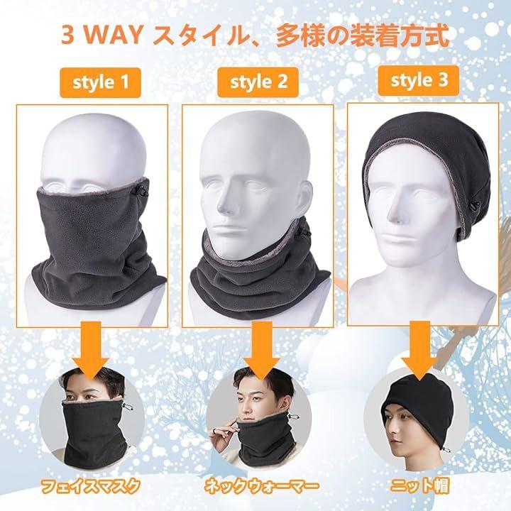 「3WAY仕様&寒い日のアイテム」ネックウォーマーとしてはもちろん、フェイスガードや帽子としても使える3WAY仕様。
