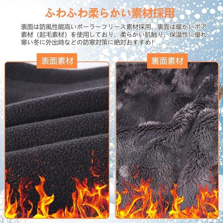 「防風・防寒&抜群の保温力」ネックウォーマーの表地には防風性に優れたポーラーフリース素材を使用し、裏地には保温力抜群のふんわり起毛ボアを採用。
